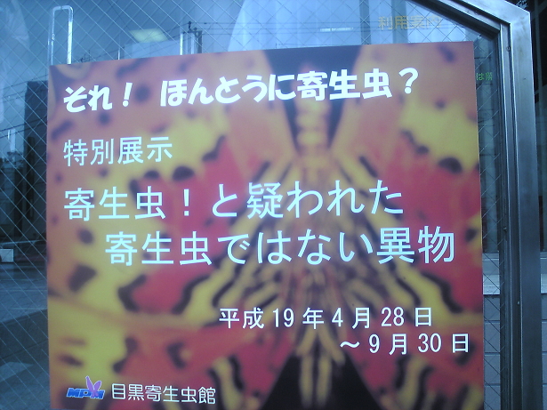 ちなみにこの本で行かないままになってた「目黒寄生虫博物館」だけど、一昨年、用事があって(あ、あれは筋肉少女帯のライブを見にいったんだった)東京に行ったときに寄ってきました。